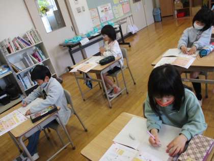 今日からひき算の筆算の学習が始まりました。真剣に考えながら、ひき算もがんばっています。