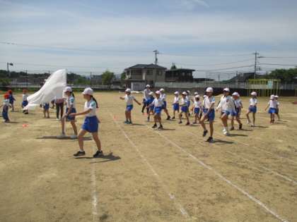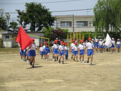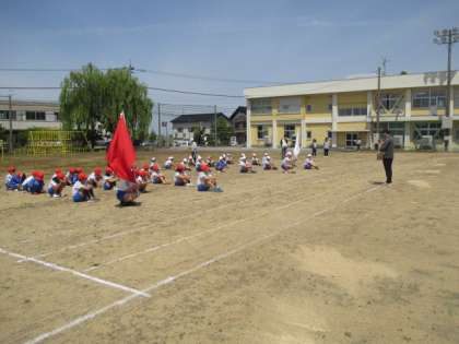 さわやかな青空のもと、運動会の全体練習を行いました。