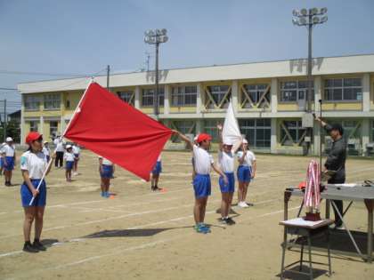 開閉会式の練習では、高学年が係の仕事を確認しました。
