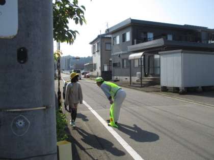 今日も地域の方に見守られて、子供たちが元気に登校しています。