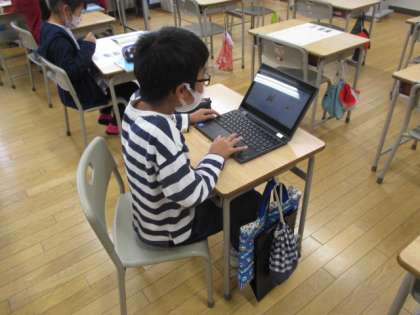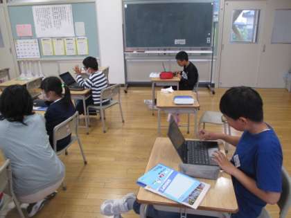 4年生は、自分たちが見つけた富山県のよさをスライドにまとめています。