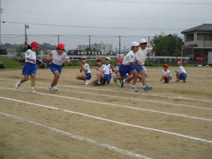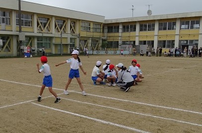 1〜4年の学年代表と5・6年生が力強く走りました。