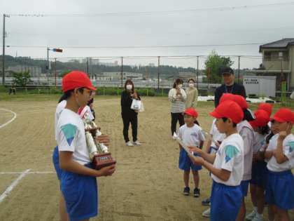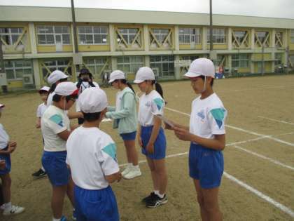 閉会式が終わり、団席に戻った後は互いにエールを送り合い、それぞれの団で解団式を行いました。これまでの頑張りを6年生と共に振り返りました。その後、団の中心に立って活動をリードしてくれた6年生に、5年生からサプライズのお礼がありました。