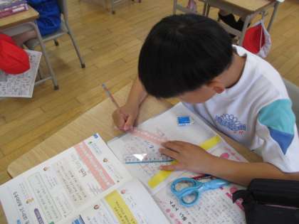 2年生の算数では、長さは1cmいくつ分あるかで表すことができることを知り、自作のものさしをつくりました。