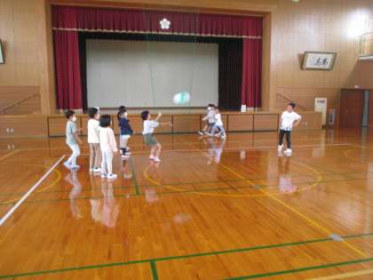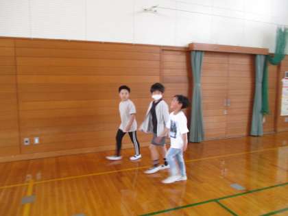 大休憩の体育館に行ってみると、ビーチバレーを楽しむ子供、ウオーキングを楽しむ子供がいました。それぞれのやり方で、運動を楽しんでいます。