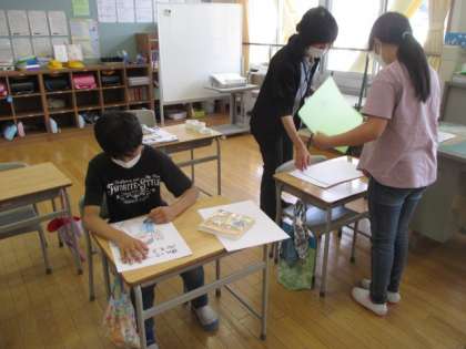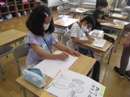 「明るくあいさつ生活委員会」では、古沢小学校に明るく元気な挨拶を広めるために、ポスターを作成しています。