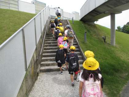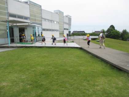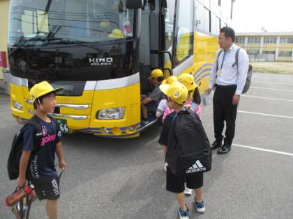 今日は、楽しみにしていた校外学習です。池多小学校の1・2年生さんと一緒に射水市大島絵本館と高岡おとぎの森公園に行きます。