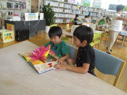 えほんシアターを見た後は、思い思いの場所で絵本を選んだり、読んだりしました。