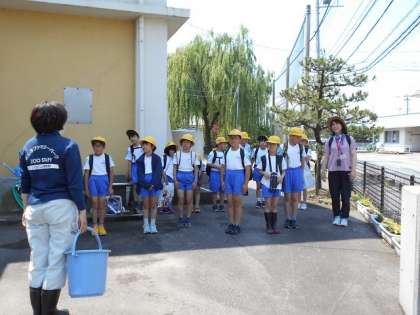 今日の3,4時間目、ファミリーパークの方と一緒にカワニナ採集に行きました。