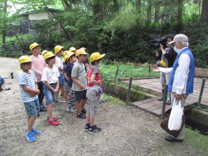 まず、「呉羽丘陵にホタルを呼ぶ会」の会長さんから、古沢用水やホタルとカワニナについて話をしていただきました。