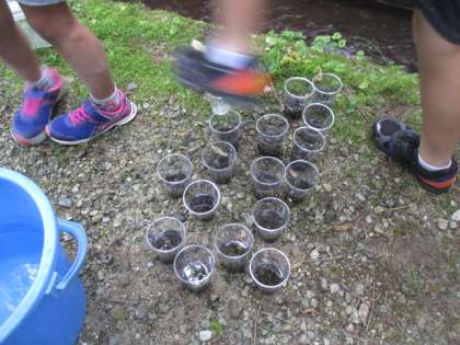 今日、放流するカワニナは、今年のホタルが産む卵から孵る幼虫の大切なエサになるそうです。今日の活動が、来年のホタルの光につながっているのですね。
