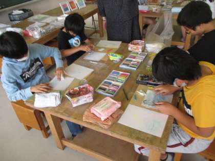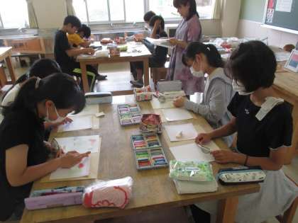 5・6年生は、4限目に行いました。毎年、古沢っ子のために来てくださる講師の先生に感謝しながら、自分だけの作品づくりに没頭する姿が見られました。