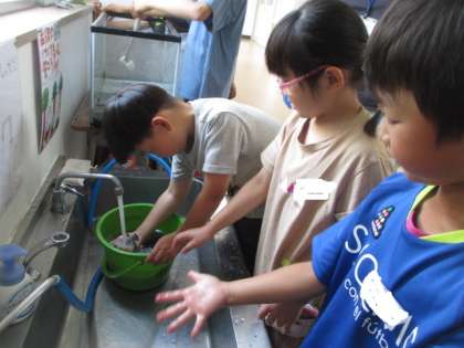 毎週火曜日にボランティアの子供たちが、デカタンの水槽や中に入れている石を洗ってくれています。