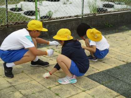 全校でプール掃除を行いました。これから、夏休み開けまで使うみんなのプールです。それぞれの学年で仕事を分担し、気持ちよく安全に使えるようにきれいに掃除しました。