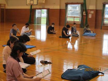 安全な水泳学習と、夏のプール開放に備えて、日本赤十字社富山県支部の方の指導のもと、救急救命講習会を行いました。