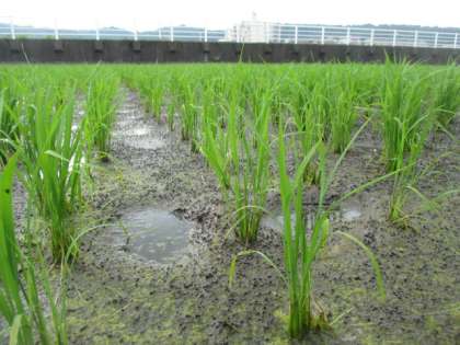ひまわり田の稲は、丈が20cmほどになり、すくすく成長しています。