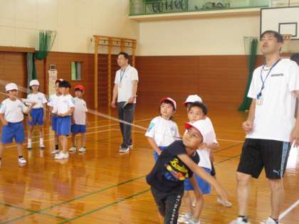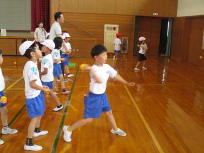 子供たちは三つの場所に分かれて、交代しながら投運動を行っていました。