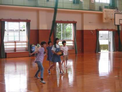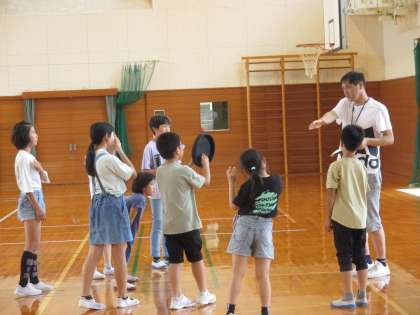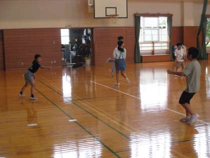 「わくわくスポーツクラブ」は、ドッジビーをして楽しみました。みんなで楽しんだ後、ドッジビーの投げ方を上級生が下級生に教える姿も見られました。ルール決めや準備等、自主的に活動する姿が見られました。