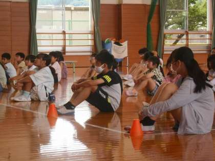 まず、学校司書の先生が「古沢のむかし話」を読み聞かせしてくださいました。子供たちは、グラウンドの柳の木にまつわるお話に聞き入っていました。