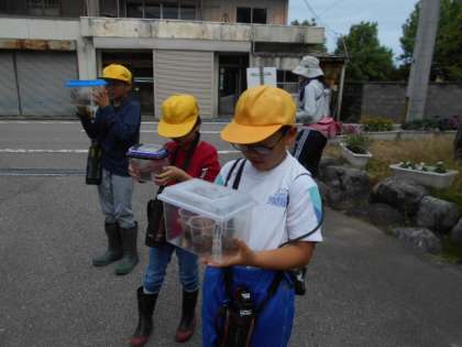 6月27日(火)3・4年生 ホクリクサンショウウオ放流1 公開日 2023/06/27 更新日 2023/06/27 最新の出来事 今日の2・3時間目にファミリーパークの方と、3・4年生でホクリクサンショウウオの放流に行きました。大切なサンショウウオを入れた水槽を持って行きます。