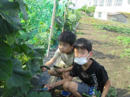 6月29日(木)2年生 朝の収穫1 公開日 2023/06/29 更新日 2023/06/29 最新の出来事 「畑へいってきまーす」2年生は、元気よく教室を出発して野菜畑へ行き、自分の野菜を確認しています。