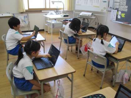 今日は、クロムブックを使って 漢字の学習に取り組んでいます。