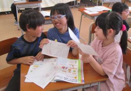 7月6日(木)1・2年生 音楽 1 公開日 2023/07/07 更新日 2023/07/07 最新の出来事 「身の回りの音を声で表して音楽づくり」をする学習です。 子供たちは、グループに分かれて身の回りで聞こえる音や鳴き声を声で表しています。