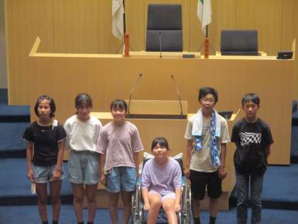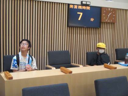 最後の見学は富山県庁です。県議会議員席に座らせていただきました。