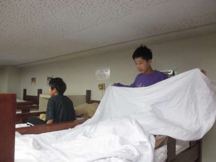 宿泊学習2日目が始まります。まずは、ふとんの片付けからです。