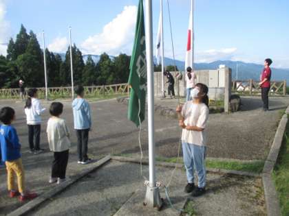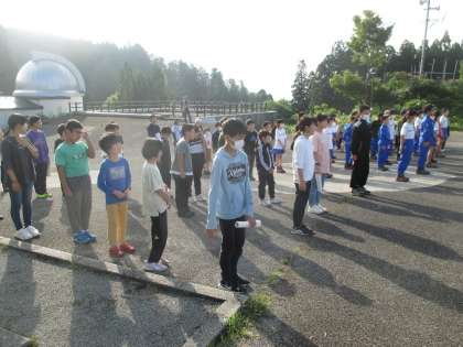 宿泊学習 2日目 その2 公開日 2023/07/21 更新日 2023/07/21 最新の出来事 朝の集いです。 古沢小学校をの校旗を揚げたり、一緒に宿泊している学校や幼稚園の人たちに学校紹介をしたりしました。 古沢小のことを知ってもらう、いい機会になりました。