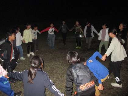 5年生が考えてきたゲームをみんなで楽しみました。最後はみんなでマイムマイムを踊りました。