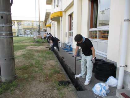 8月20日(日)親子環境整備活動1 公開日 2023/08/20 更新日 2023/08/20 最新の出来事 20日「PTA親子環境整備活動」がありました。学校周りの除草やグラウンドの溝掃除など、普段はなかなか手が回らない場所を中心に清掃をしていただきました。長寿会連合会の皆様、保護者の皆様と一緒に、美化活動に参加することは、子供たちにとって大切な体験となりました。おかげさまで、さわやかな環境で2学期を迎えることができます。ありがとうございました。