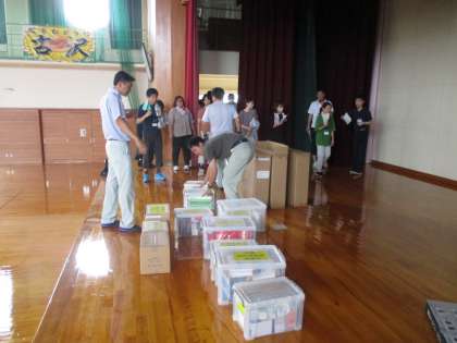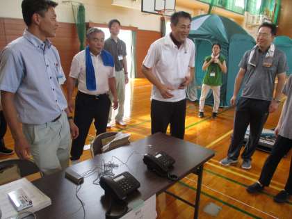 8月24日(木)避難所開設訓練を行いました 1 公開日 2023/08/24 更新日 2023/08/24 最新の出来事 本日、富山市防災危機管理課の指導の下、地震災害を想定した避難所開設訓練が行われました。自治振興会、地区センター職員、古沢保育所の皆さん、本校職員の参加により、体育館に備蓄されている防災備品を活用して、受付の設営、体育館の居住スペースの割り振り、、ワンタッチパーテーションの設置、非常電話の設営等の訓練を行いました。