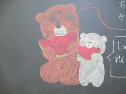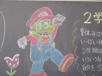 校舎内を回ってみると、教室の黒板に子供たちに向けてメッセージが書いてありました。