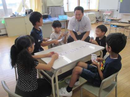 朝学習の基礎・基本の時間に、計算カードやプリント学習に取り組んでいます。