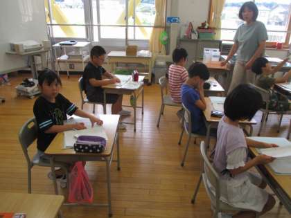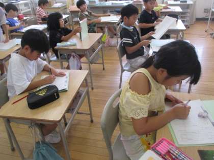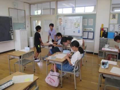どの学年も真剣に取り組んでいます。 高学年では、教え合う姿も見られました。