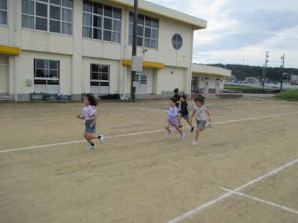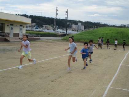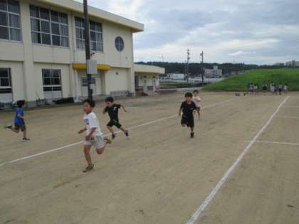 WBGTの基準を満たしていたので、今日のチャレンジタイムは、グラウンドで50m走です。久しぶりでしたが、子供たちは元気いっぱい走っています。
