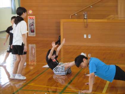 9月20日(水)チャレンジタイムもファミリー班で 公開日 2023/09/20 更新日 2023/09/20 最新の出来事 今日は、自分で決めた5種目の運動に取り組みました。 2学期からは、ファミリー班の人と一緒に運動に取り組んでいます。