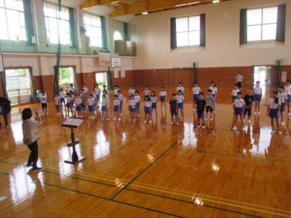9月21日(木) 区域音楽会に向けて 公開日 2023/09/21 更新日 2023/09/21 最新の出来事 今日は、音楽専科の先生に全校合唱の指導をしていただきました。 歌い出しの言葉をはっきりそろえる、リズムをそろえること等、1回1回の練習を考えて歌うことが大切なことを教えていただきました。