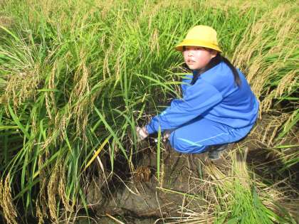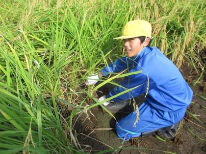6年生は余裕の表情で稲刈りをしています!