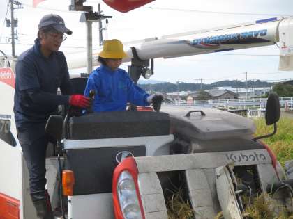 稲刈りの最後にはコンバインにも乗せていただきました。
