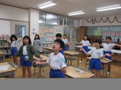 朝の会で、音楽会で発表する歌を歌っています。合唱指導の先生に教えていただいたポイントに気を付けながら、みんなで声を合わせて元気よく歌いました♪