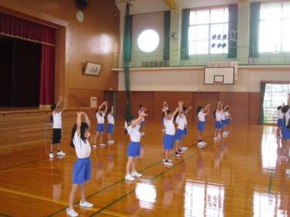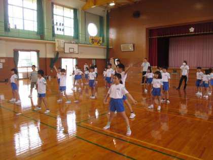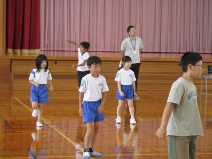9月26日(火)1〜4年生ダンスにチャレンジ 公開日 2023/09/26 更新日 2023/09/26 最新の出来事 安藤先生を真似てかっこよく踊ろうとしています。 隊形変化や列ごとに違う振り付けもありますが、自分の場所に素早く移動し、ポーズを決めています。