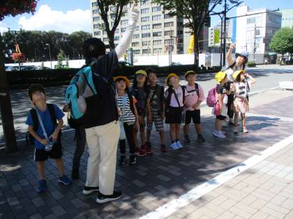 お弁当を食べた後は、市役所の展望塔から景色を眺めたり、市役所の中を少し見学したりしました。子供たちは、高いところに行けると大喜びでした♪展望塔からの景色を見ると、「車がすごく小さく見えるね。」「すごい!とっても遠くまで見えるね。」と感動している様子でした。