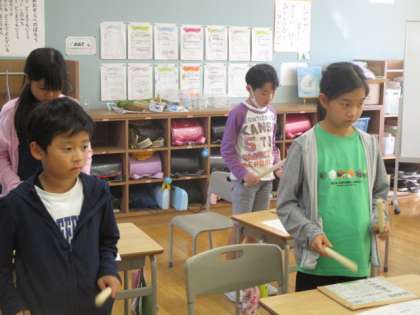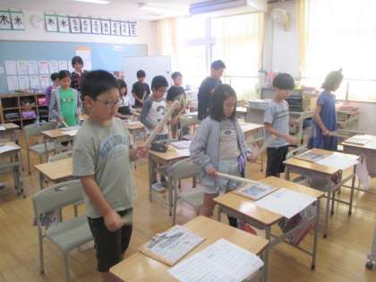 10月2日(月)3・4年生 音楽 公開日 2023/10/02 更新日 2023/10/02 最新の出来事 学習発表会で発表する太鼓の練習が始まりました。 まずは、厚く重ねた新聞紙を太鼓に見立てて、リズム打ちの練習から始めています。