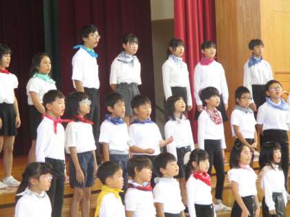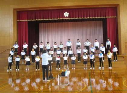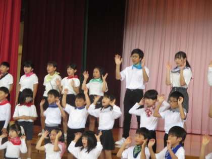 今日は、音楽会本番と一緒の衣装を着て体育館で練習しました。
