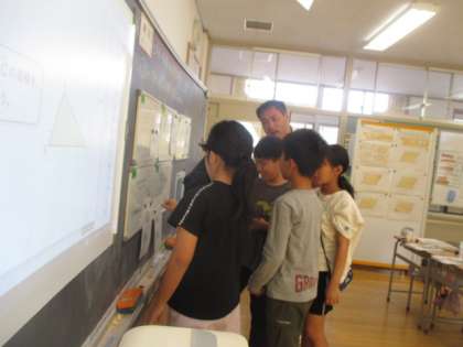 昨日に引き続き、三角形の面積の求め方についてみんなで考えています。