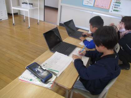 クロムブックで海の生き物について調べています。