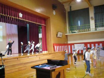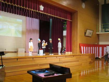 1・2年生は、学習発表会でおむすびころりんの劇をしました。緊張した様子も見られましたが、堂々とせりふを言ったり、笑顔でダンスをしたりと、一人一人が練習の成果を発揮しました。「今までで一番大きな声で言えたよ」「緊張したけど動きも忘れずできたよ」と話している姿から、やりきった様子が伝わってきました。ダンスのときの手拍子や温かい拍手、ありがとうございました。