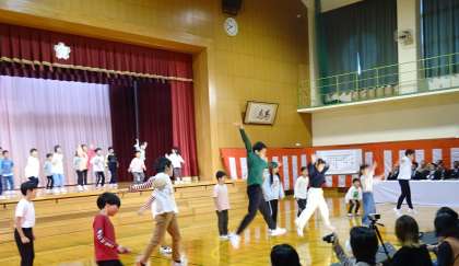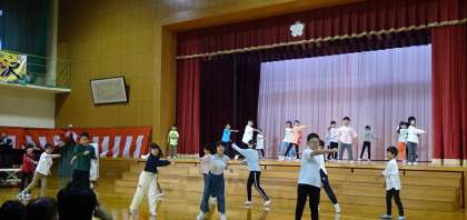 1〜4年生は、安藤先生に振り付け・指導していただいたダンス「絆ノ奇跡」を元気いっぱい披露しました。どの子も全力で難しい動きに挑戦し、ダンスを始めた頃に比べて、別人のようにダイナミックな動きができるようになりました。
